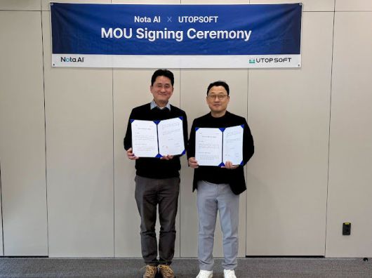 노타는 18일 서울 삼성동에서 유탑소프트와 '온디바이스 AI 기반 교육 서비스 사업 협력'을 위한 양해각서(MOU) 체결식을 가졌다고 밝혔다.
