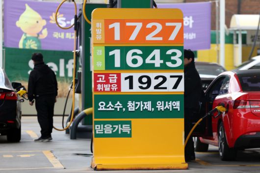 14일 서울시내 한 주유소에 휘발유와 경유 가격이 표시되어 있다. 뉴스1 |