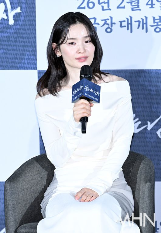 (MHN 이현지 기자) 배우 전미도가 19일 오전 서울 용산구 CGV용산아이파크몰에서 진행된 영화 '왕과 사는 남자' 제작보고회에 참석해 질문에 답하고 있다.