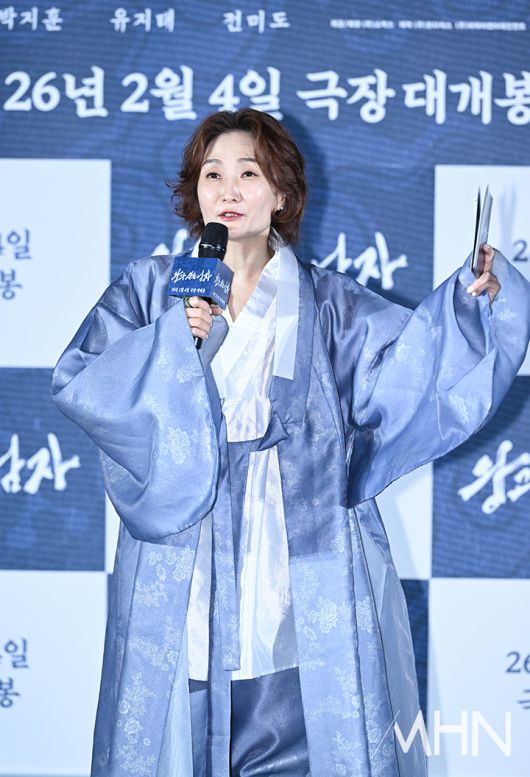 (MHN 이현지 기자) 방송인 박경림이 19일 오전 서울 용산구 CGV용산아이파크몰에서 진행된 영화 '왕과 사는 남자' 제작보고회에 참석해 진행을 하고 있다.
