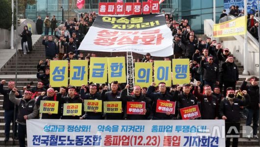 이들은 "지난 10일 정부의 '성과급 정상화' 약속을 전제로 2025년 임금교섭 잠정합의에 이르며 파업을 유보했으나 기획재정부의 약속 위반으로 합의는 파기될 전망"이라며 "'성과급 정상화'의 구체적 내용은 철도공사도 타 공공기관과 같이 성과급 지급기준을 기본급 의 100%로 산정하자는 요구였다. 기재부가 100%가 아닌 90%를 기준으로 하는 방안을 마련한 것으로 파악했다"고 설명했다.