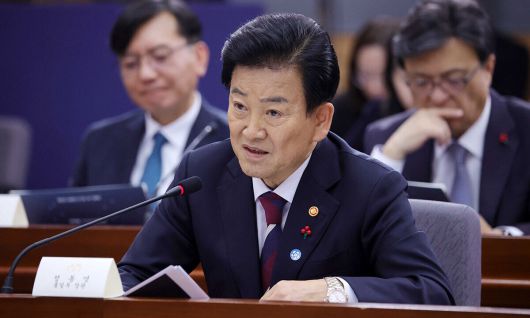 정동영 통일부장관이 19일 서울 종로구 정부서울청사 별관에서 열린 외교부(재외동포청)·통일부 업무보고에서 발언을 하고 있다. 대통령실사진기자단 제공 |