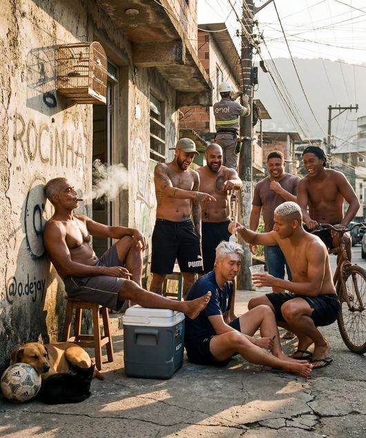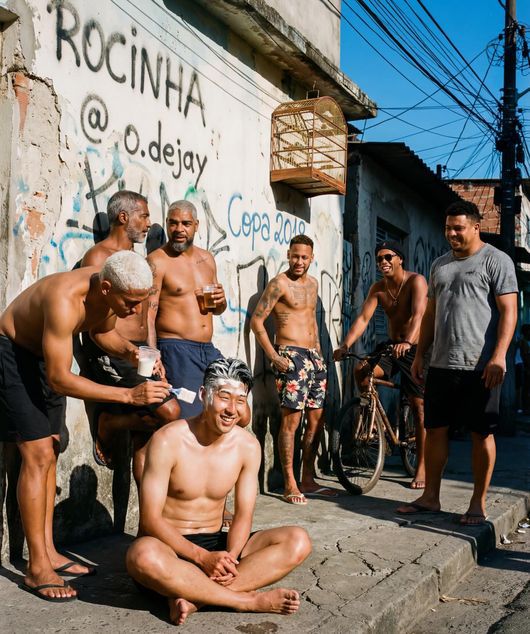 7명 중 손흥민만 뜬금없이 브라질 사람이 아닌 상황. AI 제작으로 보이는 이미지 속에서 히샬리송은 손흥민의 머리를 자신과 똑같은 하얀색으로 염색하며 장난 치는 모습이었다. 주변에 모인 브라질 전설들은 이를 바라보며 웃고 있었다.
