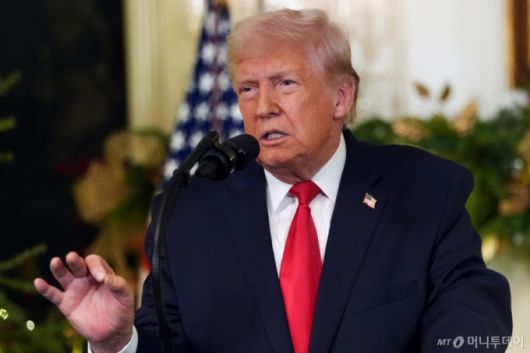 [워싱턴=AP/뉴시스] 도널드 트럼프 미국 대통령이 17일(현지 시간) 백악관 외교 접견실에서 대국민 담화를 하고 있다. 2025.12.18. /사진=민경찬 |