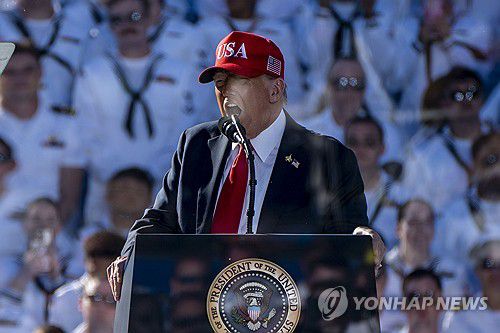 미 해군 창설 250주년 연설하는 트럼프 대통령 |