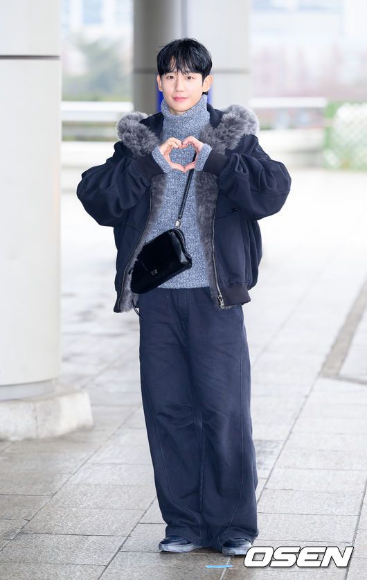[OSEN=김포공항, 이대선 기자] 배우 정해인이 20일 오전 해외 일정차 김포국제공항을 통해 중국 상하이로 출국했다. 대세 배우로서의 활약을 펼치고 있는 정해인은 넷플릭스 시리즈 '이런 엿 같은 사랑' 촬영을 진행 중이다. 정해인이 팬과 취재진을 향해 인사를 하고 있다. 2025.12.20 /sunday@osen.co.kr