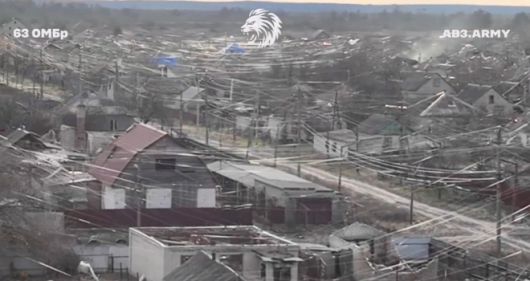 광섬유 케이블로 뒤덮인 도네츠크주 북부 도시 리만의 한 마을 모습. 영상 캡처 |
