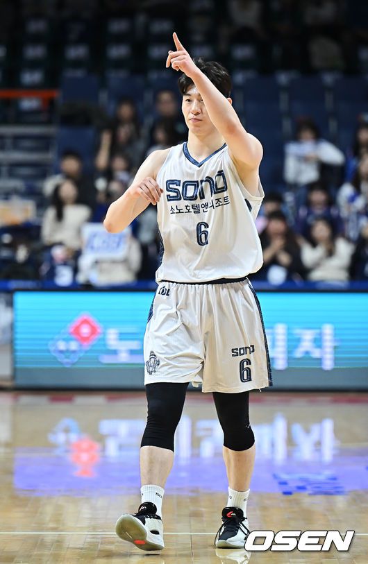 [OSEN=부산, 이석우 기자] 20일 부산 사직체육관에서 2025-2026 LG전자 프로농구 부산 KCC와 고양 소노의 경기가 열렸다. 4연승의 상승세를 탄 KCC와 3연패 탈출을 노리는 소노가 서로 다른 목표를 안고 맞대결을 펼친다. 고양 소노 이정현이 켐바오의 득점에 세리머니를 하고 있다. 2025.12.20 / foto0307@osen.co.kr
