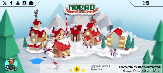 산타 추적 웹사이트는 이미 영어, 프랑스어, 스페인어, 한국어 등 9개 언어를 지원하고 있다. 웹사이트에서는 지도와 애니메이션을 통해 산타가 북극에서 이륙해 태평양을 가로지르는 여정을 실시간으로 확인할 수 있다.
