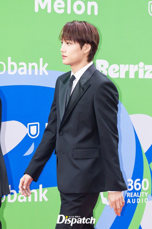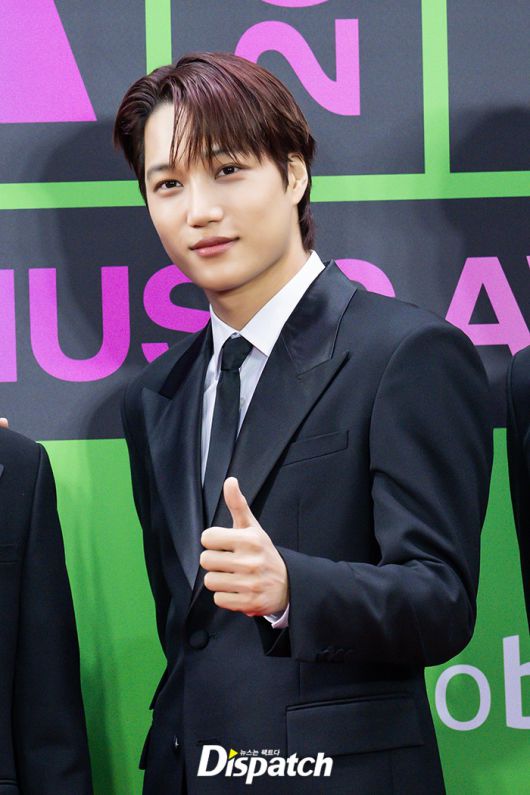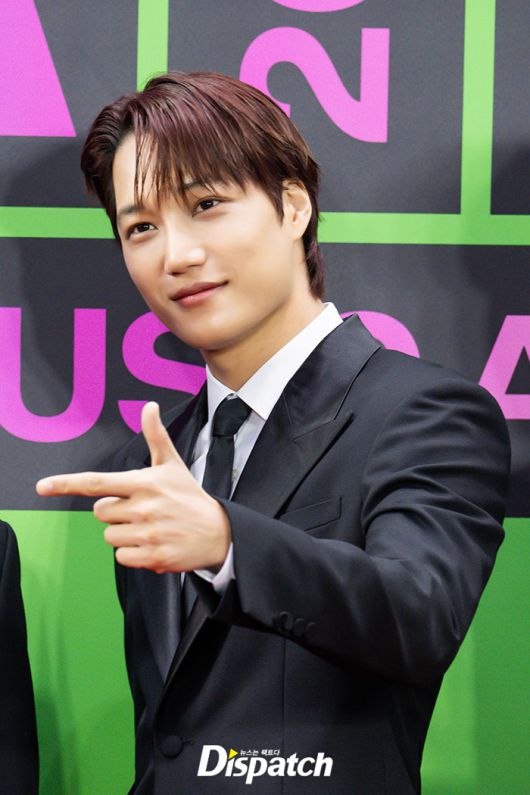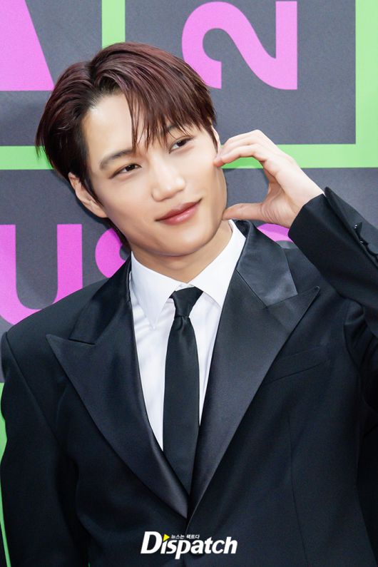 '엑소' 카이는 블랙 수트로 멋을 냈다. 잘생긴 비주얼이 시선을 사로잡았다.