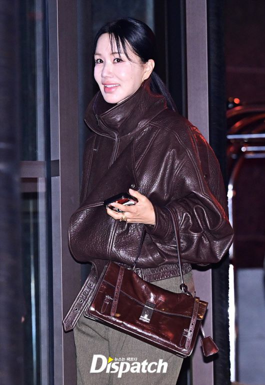 엄정화는 가죽 소재의 재킷으로 독특한 스타일링을 완성했다. 세월이 흘러도 여전한 비주얼이 눈길을 끌었다.
