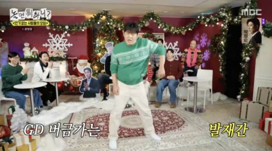 이날 9위에서 순식간에 8단계가 올라 인기투표 1위를 차지한 허성태는 유재석이 추천한 지드래곤의 ‘TOO BAD’ 댄스에 나섰다.