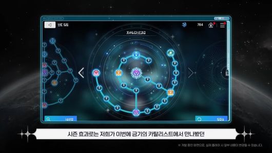 시즌 콘텐츠를 쉽게 확인할 수 있는 시스템이다. 시즌 보드에서는 콘텐츠 진척도도 열람 가능하다. 특정 콘텐츠마다 미션을 완료하면 은하 훈장이라는 스티커를 얻을 수 있다.