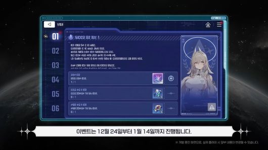 성장 재화와 시뮬레이션 보상을 매일 6회씩 2배로 받을 수 있다. 해당 이벤트는 12월 31일부터 1월 7일까지 진행된다.