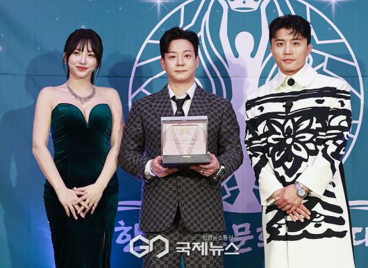 (서울=국제뉴스) 이대웅 기자 = '제3회 대한스포츠문화예술대상' 시상식이 12일 경기도 성남시 동서울컨벤션센터에서 열렸다. 이날 스포츠문화예술대상을 수상한 조선장어 윤성호 대표가 기념 포즈를 취하고 있다.