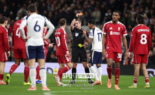 토트넘은 21일(한국시간) 홈구장인 토트넘 홋스퍼 스타디움에서 열린 2025-26시즌 잉글랜드 프리미어리그 17라운드에서 리버풀에 1-2로 졌다. 전력의 핵심들이 차례로 퇴장을 당하는 악재를 극복하지 못했다.