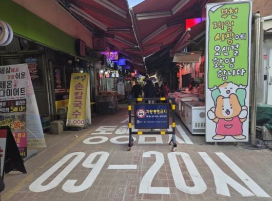 21일 경기 부천오정경찰서 등 설명을 종합하면, 경찰은 최근 오정구 원종동 제일시장에 차량 운행을 통제하는 교통안전 시설물 설치 작업을 마쳤다. 이동형 바리케이드 8개, 이동형 볼라드(차량 진입 억제용 말뚝) 5개, 통행금지 표지판 4개 등이 설치됐다.