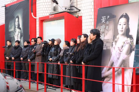 21일 서울 종로구 한예극장 앞에서 배우 윤석화의 노제가 열리고 있다. 연합뉴스 |