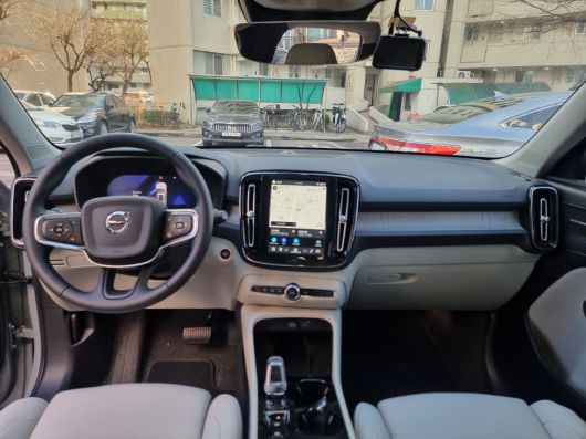 XC40의 제원은 전장 4425㎜, 전폭 1865㎜, 전고 1640㎜, 휠베이스 2702㎜를 갖추고 있지만, 짧은 오버행과 넓은 차폭이 만들어내는 시각적 비례감은 차급을 넘어서는 안정감을 줬다. 정교하게 다듬어진 픽셀 LED 헤드램프와 리뉴얼된 전·후면 범퍼는 볼보 특유의 절제된 디자인 철학을 유지하면서도 강한 존재감을 남긴다.