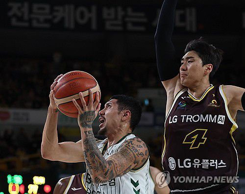 (창원=연합뉴스) 김동민 기자 = 21일 경남 창원체육관에서 열린 2025-2026 LG전자 프로농구 정규리그 창원 LG 세이커스와 원주 DB 프로미의 경기. DB 이선 알바노가 슛하고 있다. 2025.12.21