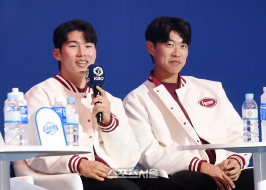 키움 이정후(왼쪽)와 김혜성이 30일 서울 용산구 그랜드하얏트서울호텔에서 진행된 2023 KBO 미디어데이 행사에서 사회자의 질문에 답을 하고 있다. 사진 | 박진업 기자 upandup@sportsseoul.com |