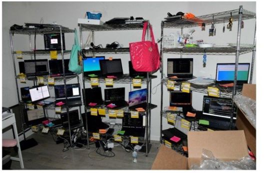 북한 IT 노동자의 미국 취업을 도운 사실이 드러나 지난 7월 법원에서 징역형을 선고 받은 크리스티나 마리 채프먼이 자택에서 운영하던 '노트북 농장'. 북한 노동자들은 이 노트북에 원격으로 접속했다.연합뉴스 |