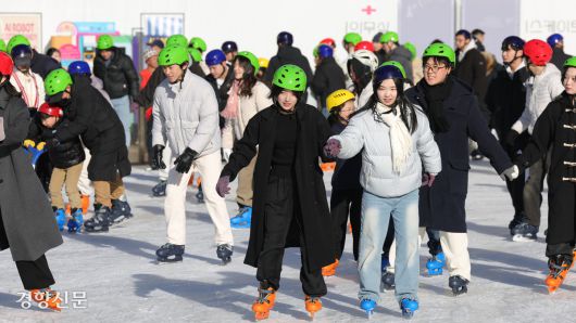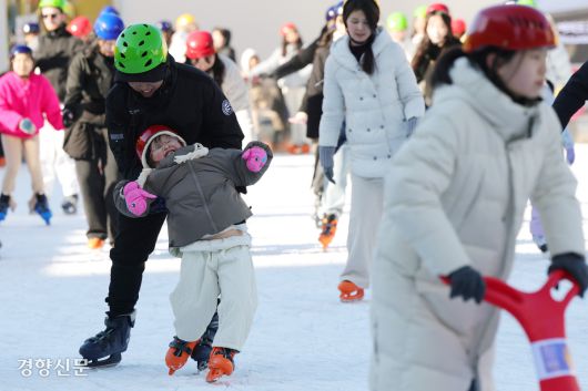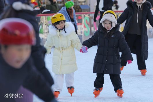 이날 서울 중구 서울시청 광장 스케이트장을 방문한 시민들은 하얗게 언 빙판 위를 돌며 겨울을 즐겼다. 지난 19일 개장한 스케이트장은 내년 2월8일까지 운영한다. 운영 시간은 평일 오전 10시부터 오후 9시 30분까지, 토요일과 공휴일은 오전 10시부터 오후 11시까지다. 매 회차당 온라인 예매 300명, 현장 예매 300명이 이용할 수 있다.