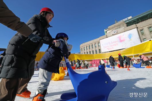 21일 개장 이후 첫 주말을 맞은 서울 광장 스케이트장을 찾았다.