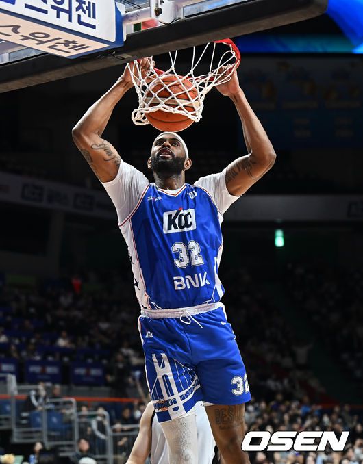 [OSEN=부산, 이석우 기자] 21일 부산 사직체육관에서 2025-2026 LG전자 프로농구 부산 KCC와 수원 KT의 경기가 열렸다. 5연승의 상승세를 탄 KCC가 연승을 이어갈 지 기대된다. 부산 KCC 드완 에르난데스가 덩크슛을 성공시키고 있다. 2025.12.21 / foto0307@osen.co.kr