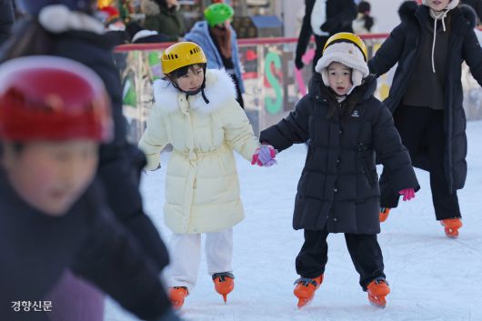 21일 서울 중구 서울광장 스케이트장에서 어린이들이 스케이트를 타고 있다. 지난 19일에 개장한 서울광장 스케이트장은 오전 10시부터 시작해 평일에는 오후 9시30분, 주말에는 오후 11시까지 운영된다.