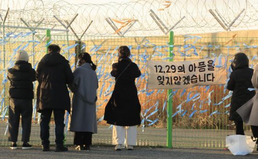 이날 오후 공항 1층 분향소에서는 사고 1주기를 앞두고 ‘12·29 무안공항 제주항공 참사 유가족과 함께하는 추모 미사’가 열렸다. 무안성당을 중심으로 천주교 광주대교구 등이 마련한 행사다. 미사 후 유족과 시민들은 사고 현장 철책으로 이동해 파란 리본을 묶으며 희생자들을 기렸다.