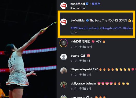 결승전 직후 BWF는 공식 SNS를 통해 안세영의 경기 동영상을 느린 화면으로 게재한 뒤 "최고다, 젊은 GOAT"라고 설명했다.