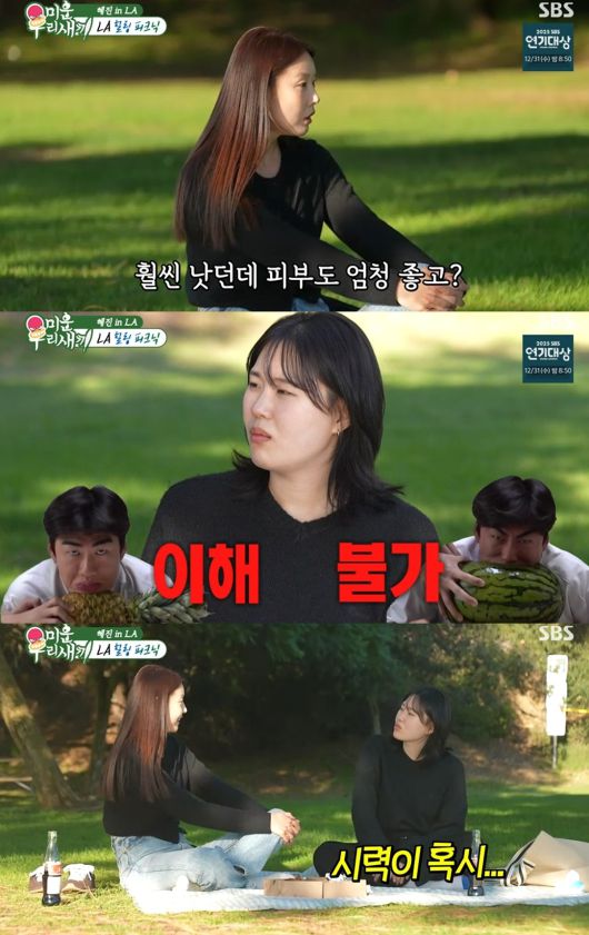 이를 듣던 엄지윤은 "언니 혹시 시력이 어떻게 되나"고 물어 웃음을 자아냈다.