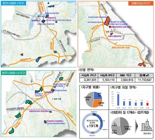 강원특구는 바이오 신소재(춘천), 디지털 헬스케어(원주), 반도체 소재·부품(강릉) 등 3대 특화산업을 중심으로 집중 육성된다.