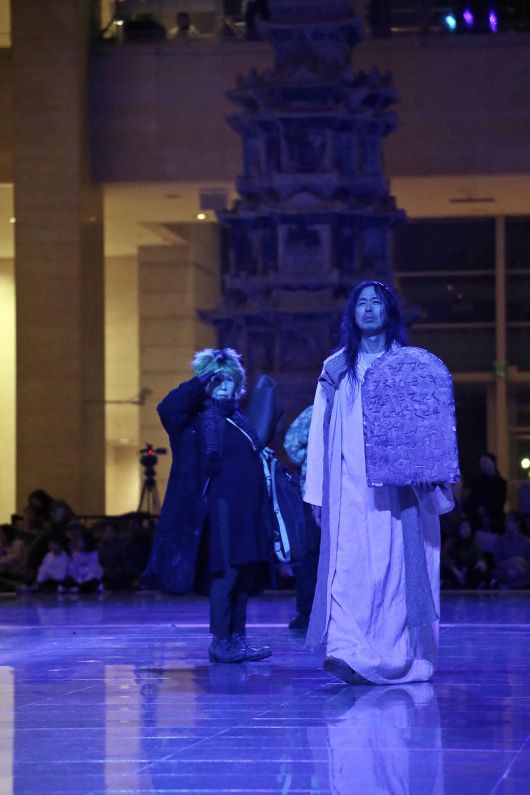 서울 용산 국립중앙박물관, 경천사지십층석탑으로 향하는 ‘역사의 길’에서 17일과 20일 열린 비언어 총체극 ‘우리가 서로 알 수 없었던 시간- 삶의 무도회’ 공연. /이태훈 기자
