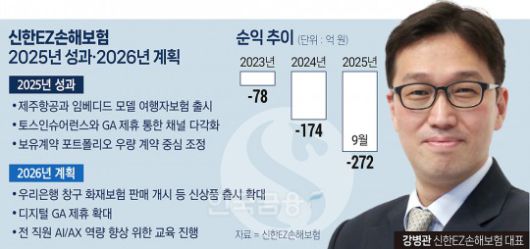 재연임에 성공해 2026년도 신한EZ손해보험을 이끌게 된 강병관 신한EZ손해보험 대표가 2026년 디지털 GA 공략을 늘리고 빠르게 도래하는 AI/AX에 발맞춰 AI 역량 강화에도 속도를 내리고 했다. 제주항공 임베디드 상품으로 출시한 여행자보험처럼 임베디드 등 디지털 신상품을 늘린다는 방침이다.