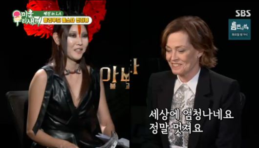 특히 할리우드의 전설 시고니 위버는 한혜진을 보자마자 “분장이 너무 훌륭해서 자꾸 시선을 뺏긴다”며 극찬을 아끼지 않았다. 긴장감에 우황청심환까지 준비하며 인터뷰에 나섰던 한혜진은 배우들의 뜨거운 리액션에 환한 미소로 화답하며 성공적으로 인터뷰를 마쳤다.