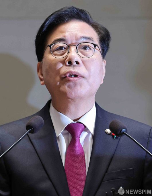 [서울=뉴스핌] 윤창빈 기자 = 송언석 국민의힘 원내대표가 22일 서울 여의도 국회에서 열린 의원총회에서 모두발언을 하고 있다. 2025.12.22 pangbin@newspim.com