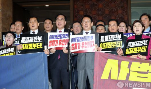 김은혜 원내정책수석부대표는 규탄사를 통해 "언론 자유와 사법 독립을 무너뜨리는 입법 독재의 2막이 시작됐다"며 "입맛대로 판사를 골라 재판부를 구성하고, 언론에 재갈을 물리는 반헌법적 시도"라고 비판했다.
