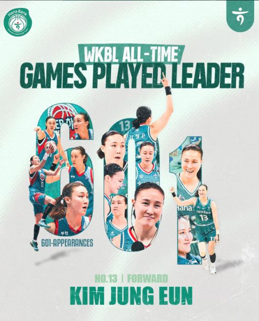 또 이 날 김정은은 통산 601경기를 소화하며 여자프로농구(WKBL) 역대 최다 경기 출전 기록을 경신했다.