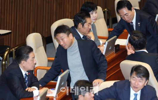 [이데일리 노진환 기자] 정청래 더불어민주당 대표와 김병기 원내대표 및 의원들이 22일 서울 여의도 국회에서 열린 제430회국회(임시회) 제2차 본회의에서 대화하고 있다.