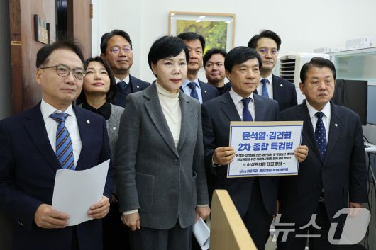 (서울=뉴스1) 신웅수 기자 = 전현희 위원장을 비롯한 더불어민주당 3대특검 종합대응특위 위원들이 22일 서울 여의도 국회 의안과에 윤석열·김건희 2차 종합 특검법을 제출하고 있다. 2025.12.22/뉴스1phonalist@news1.krCopyright ⓒ 뉴스1. All rights reserved. 무단 전재 및 재배포, AI학습 이용 금지.