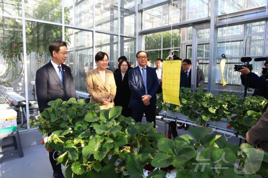 (서울=뉴스1) = 배경훈 부총리 겸 과학기술정보통신부 장관과 송미령 농림축산식품부 장관이 22일 오전 충청남도 천안시 연암대학교를 방문해 스마트팜 및 그린테크이노베이션센터에서 농업 AI 연구현장을 둘러보고 있다. (농림축산식품부 제공. 재판매 및 DB 금지) 2025.12.22/뉴스1