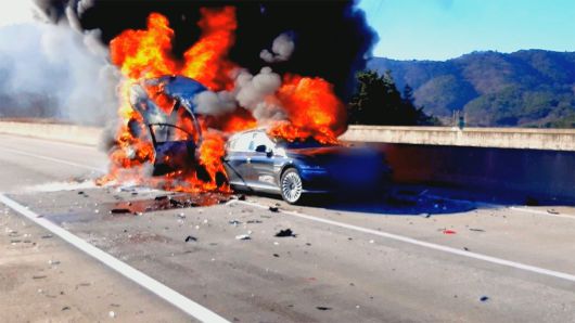 사고로 다량의 연기가 발생하면서 차량 정체가 이어지자, 당국은 통행 차량을 우회하도록 조치했습니다.