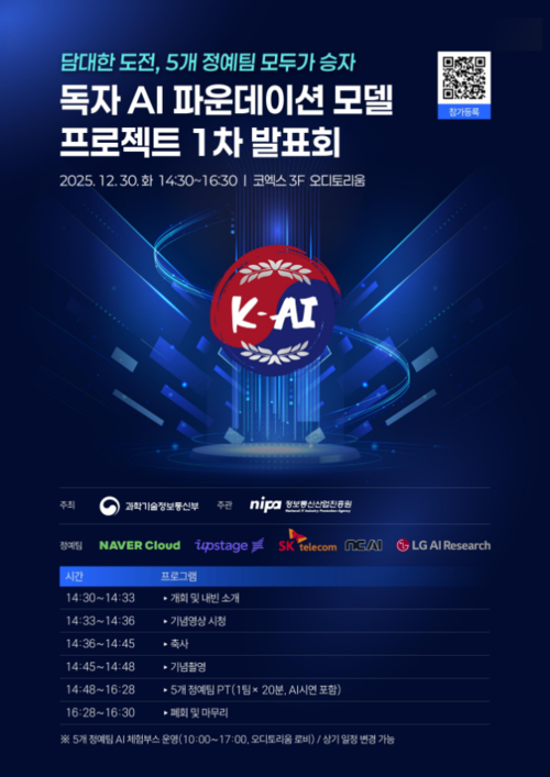 글로벌 수준의 인공지능(AI) 원천 모델 확보를 위해 가동되고 있는 ‘독자 AI 파운데이션 모델’ 프로젝트의 첫 발표회가 오는 30일 열린다. 일반 시민 대상 체험도 진행한다.