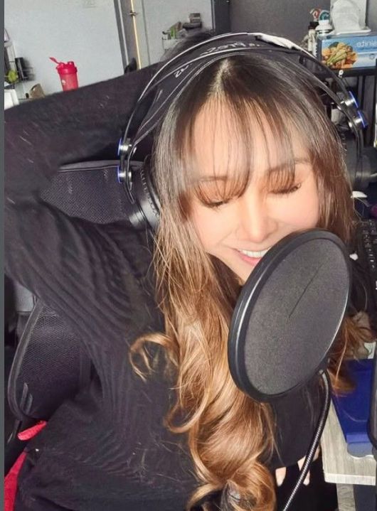 사진에는 헤드폰을 착용한 채 마이크 앞에 선 지나의 모습이 담겼다. 마이크를 가까이 두고 미소 짓는가 하면, 팔을 머리 위로 올린 편안한 포즈로 녹음 작업 중인 듯한 분위기를 전했다.