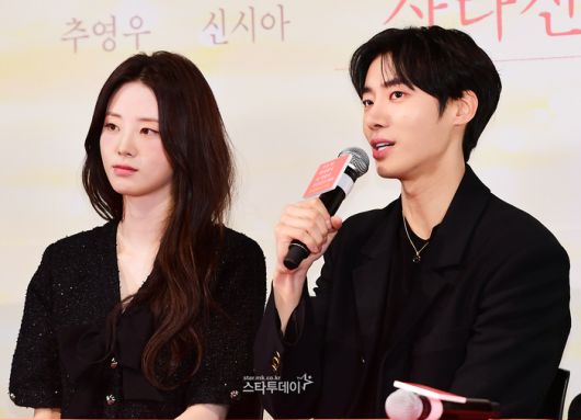배우 신시아(왼쪽)와 추영우. <강영국 기자>