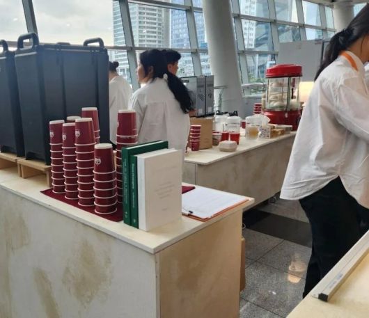 2024년 11월 \'부산 국제 플라스틱 협약\' 협상이 진행된 벡스코 안의 한 카페에 1회용 플라스틱 제품들이 쌓여있다. 플뿌리연대 제공 |