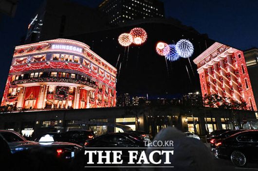 [더팩트ㅣ송호영 기자] 22일 오후 서울 중구 신세계백화점 본점에 설치된 미디어 파사드 '신세계스퀘어'에서 크리스마스 영상이 송출되고 있다.