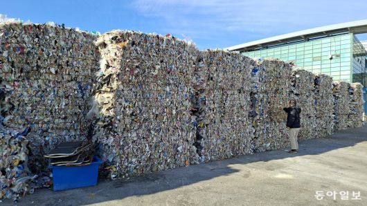 처리장 외부에 선별·세척을 마친 쓰레기들이 종류별로 정리돼 쌓여 있다. 고성=이인모 기자 imlee@donga.com |